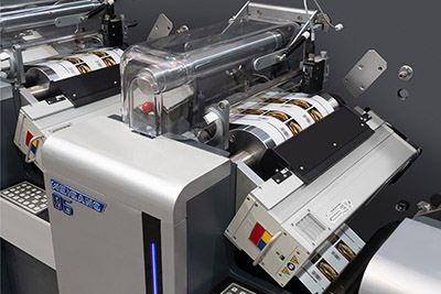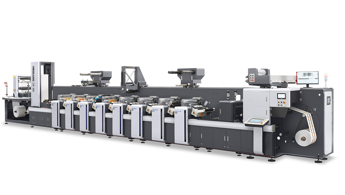(وحدة طباعة بثمانية ألوان، وحدة ثطع بقالب واحد، إعادة لف وفك الرول مستمرة)