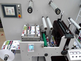إن آلات القطع القالبي للملصقات الدوارة/ شبه الدوارة، هي آلات تحويل تم تطويرها حديثا وتم تجهيزها بمِقطع الجذّ (الشق) المتوالي (خطِّيا). وتعتمد هذه الآلة نظاما للتحكم جهازا مؤازرا (Rexrtoh-Bosch ) ألماني الصنع، من ضمنها جهاز حل اللّف، موجه لفة الورق، الترقيق، جهاز القطع القالبي المسجل، جهاز الجذ (الشقّ) وجهاز إعادة اللف.
