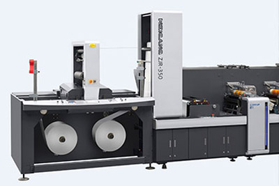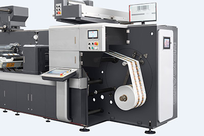 (وحدة طباعة بثمانية ألوان، وحدة ثطع بقالب واحد، إعادة لف وفك الرول مستمرة)